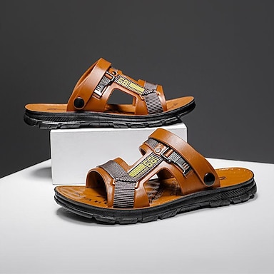 miesten ruskeat liukusandaalit, joissa kaksinkertaiset olkaimet ja pehmustettu pohja - mukavat rento kesäkengät ulkoiluun ja päivittäiseen käyttöön