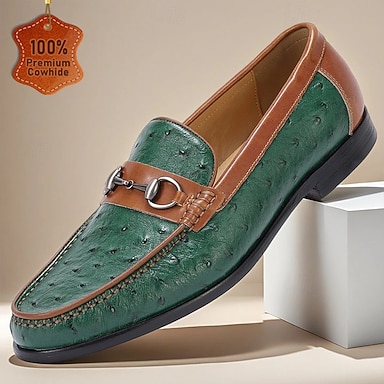 Miesten vihreät aitoa nahkaa olevat loaferit soljilla – tyylikkäät ja mukavat sekä arkeen että vapaa-aikaan.