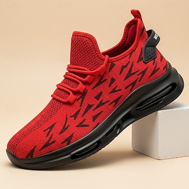 Miesten punaiset keinonahkaiset urheilukengät, kevyet ja hengittävät urheilukengät juoksuun, kuntosalille ja ulkoiluun.
