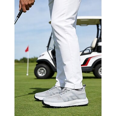 Miesten harmaat golfkengät, hengittävä verkkokangaspäällinen, pehmustettu pohja, kevyt ja suorituskykyinen tyyli golfkentille ja ulkoiluun