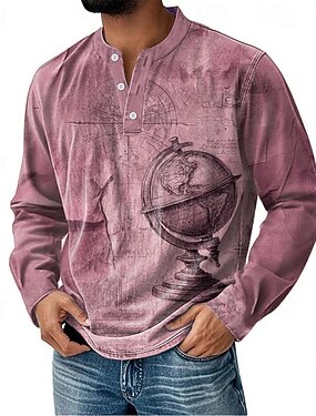 Miesten Kuvitettu Vintage Henley-paita Pitkähihainen Muoti söpö tyyli Päivittäin Kausaliteetti Pyhäpäivä 봄 & Syksy Kaikki vuodenajat Pinkki Tumman sininen Vihreä Khaki Henley Henley T-paita