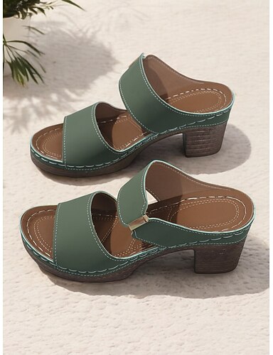 naisten vihreä lohkokorko kaksinkertaiset hihnat sandaalit - mukavat kengät arkeen ja kesäasumiseen