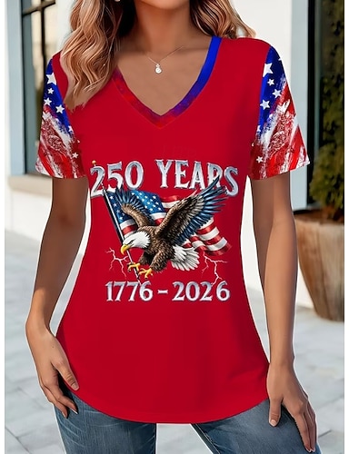 itsenäisyyspäivä amerikkalainen vuosipäivä isänmaallinen naisten t-paita printti graafinen lippu vintage tyylikäs klassinen lyhyet hihat v-pääntie tavalliset yläosat arki punainen kesä kevät