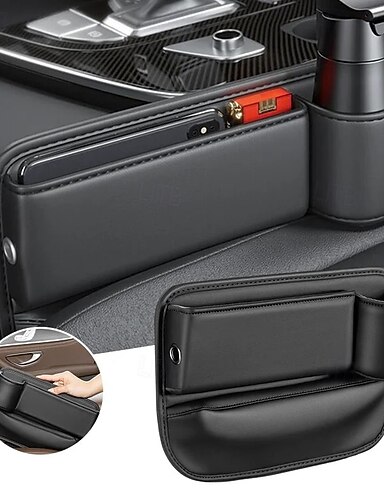 2 kpl istuinvälien säilytyslaatikkoa autoon, kuljettajan ja matkustajan puolen järjestäjä, auton istuimen rakotaskun pidike välttämättömille tavaroille, rakojen täyttölaatikko