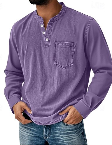 Miesten Vintage Henley-paita 100 % puuvillahappopesupaita T-paita Tee Pitkähihainen Retro / vintage Vapaa-aika Kausaliteetti Kevät Syksy Kaikki vuodenajat Sininen Musta Vaaleanpunainen Purppura Ruskea
