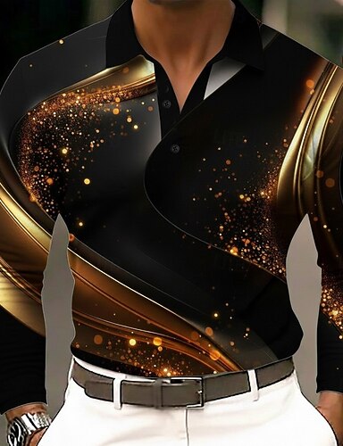 Miesten Abstrakti Geometrinen Polo Pitkähihainen Poolopaidat Kauluskäänne Vapaa-aika ulko- Katu Urheilu- ja treenivaatteet Arki-asut 3D-tulostus Napit Kevät Syksy Talvi Sininen Kulta Apila
