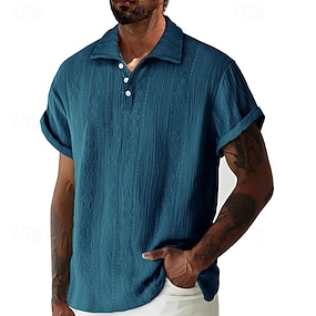 Miesten Polo Textured Kausaliteetti liiketoiminta Ribbineulospikeekaulus Lyhythihainen Muoti Perus Yhtenäinen väri Pintakäsitelty Napit Kesä 봄 & Syksy Normaali Sininen Musta Valkoinen Vaalean vihre