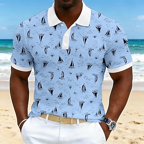 Miesten Laiva Poolopaidat Lyhythihainen Poolopaidat Kauluskäänne Vintage Vapaa-aika Katuvaatteet Arki-asut 3D-tulostus Hengittävä verkkokangas Kevät kesä Sininen