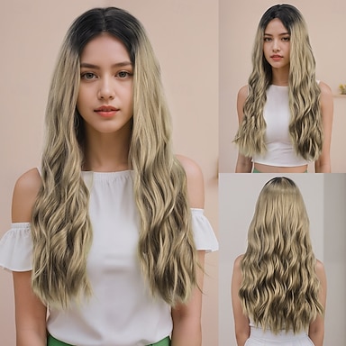 Synteettiset peruukit Laineita Kihara kutoa Keskiosa Epäsymmetrinen leikkaus Syvä hajoaminen Koneella valmistettu Peruukki 26 tuumaa Musta ja kulta Synteettiset hiukset Naisten Klassinen Mukava Väri
