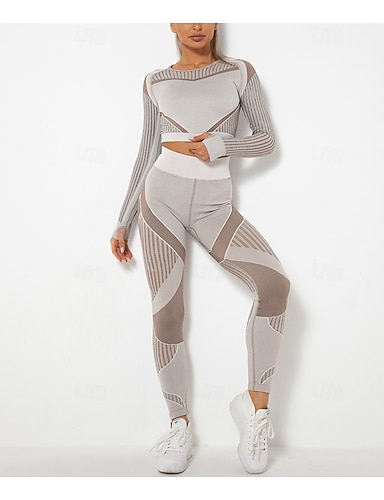 Naisten 2 osainen Joogapuku 2-osainen treenisetti Raita Liikunta-asut Kesä Tumman harmaa Musta Kuntosaliharjoitus Lentopallo Juoksu Korka vyötärö Venyvä Hengittävä Urheilu Urheiluvaatteet Tiukka