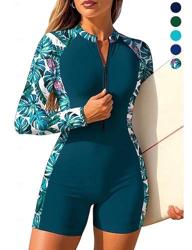 Naisten Normaali Ihottumissuoja Uimapuku Boyleg Kukka Trooppinen Sulkea jnk vetoketju Irrotettava toppaus Etuvetoketju UV-aurinkosuojaus UPF50+ Erikoiskevyt(UL) Pitkähihainen Uima-asut Rash guard