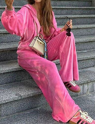 Naisten Verryttelypuku Veryttelyhousut Vetoketjullinen huppari Kurenauha Tasku Yhtenäinen Liikunta-asut Syystalvi Musta Pinkki Sametti Kuntosali Koulutus Juoksu Korka vyötärö Tuulenkestävä Kosteuden