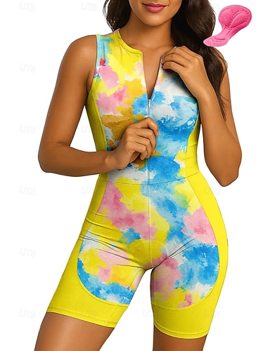 Naisten Triathlon Tri -puku Pyöräilypaitasarja Hihaton Kesä Keltainen naamiointi Pyörä 3D alusta Nopea kuivuminen Ultraviolettisäteilyn kestävä Etuvetoketju Heijastinraidat Urheilu Vaatetus