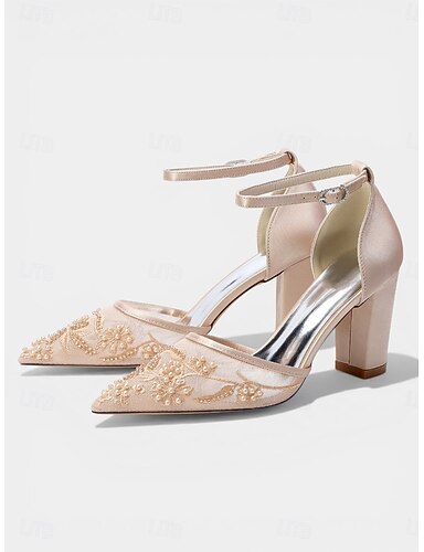 naisten samppanjanväriset kirjaillut lohkokorkoiset avokkaat – tyylikkäät cocktail-juhlakengät