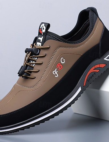 Miesten khakin ja mustat vapaa-ajan lenkkarit, nauhalliset mukavat kävelykengät päivittäiseen käyttöön, matkustamiseen, työmatkalle, ulkoiluun, katutyyliin, viikonloppuaktiviteetteihin ja urheilulliseen rentoon tyyliin