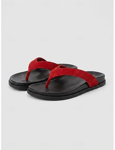 naisten punaiset rantavarvassandaalit - kevyet mokkanahkaiset stringit liukumattomalla pohjalla kesän merenrantalomille, hiekkarannoille &trooppisten saarten lomat