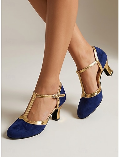 naisten vintage 1920-luvun sininen &Kultaiset T-hihnalliset avokkaat - elegantit gatsby-tyyliset korkokengät flapper-juhliin, retrohäät &mölyävät 20-luvun flapper-asut