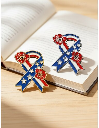 Naisten metalliseosnauhasta valmistettu kukkarintaneulasarja, kulta-hopea isänmaalliset rintaneulat Amerikan 250-vuotisjuhliin, itsenäisyyspäivään, juhla-iltoihin ja juhlavaan bleiserityyliin