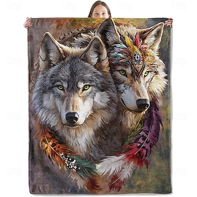 Kuolleiden päivä Fleece-peitot Heittohuopa sohvalle Susi Klassinen 3D Sohva Sänky Koristeellinen peitto Lämmin peitto Kodin sisustus