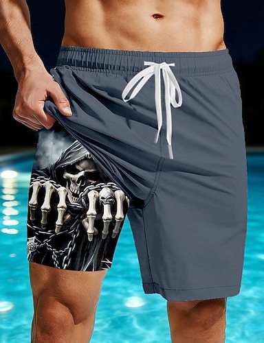 Miesten Pääkallot Viikatemies Luuranko Vuoratut shortsit 2 in 1 uimashortsit Uimapuvut Uimahousut Keskivyötärö Tumma goottilainen tyyli Kausaliteetti Rantaloma Sivutaskut Compression Linerin kanssa