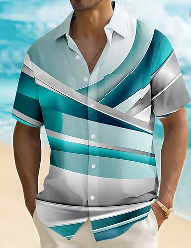 Miesten Geometrinen Havaijilaiset poolopaidat Lyhythihainen Poolopaidat Kauluspaidat Vapaa-aika Urheilu- ja treenivaatteet Lomavaatteet 3D-tulostus Napit Hengittävä verkkokangas Kevät kesä Sininen
