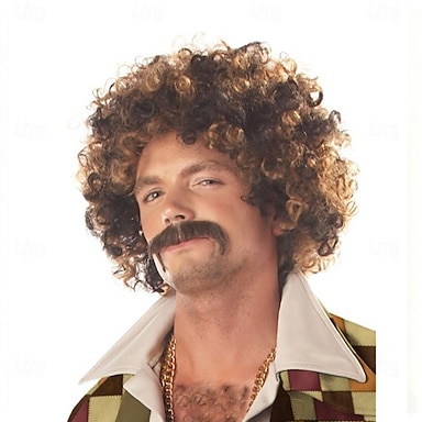 70-luvun afroperuukki miehille, ruskeablondi sekatyylinen diskoperuukki, 70-luvun hippiasuasusteet