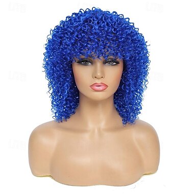 Carnival-peruukki 2026 Vaaleahiuksisuus Vaaleanpunainen Sininen Kihara Afro Lyhyt Synteettinen festivaaliperuukki Mardi Gras Paraati Cosplay-asun hiukset varten Naisten