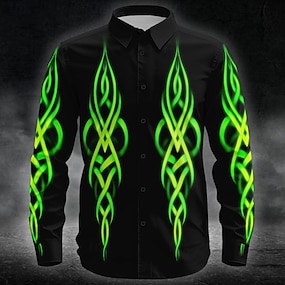 Miesten Tribal Neon Hohtava Pukukappaleet Paita Napillinen Paita Pitkähiha Tumman Punk Goottityylinen Ulkoilu Lomakesä Kevät Käännettävä 3D Tulostettu Kauluspaita Sininen Purppura Vihreä