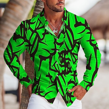 Miesten Geometrinen printti Geometria Paita Button Up paita Pitkähihainen Muoti Katutyyli Suunnittelija ulko- Kausaliteetti Päivittäin Kesä Kevät Syksy Stand-kaula-aukko Painettu Sini-viher