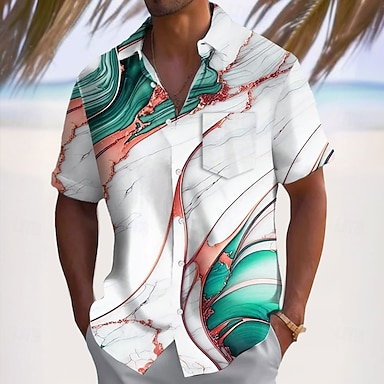 Miesten Abstrakti Marmori Paita Button Up paita Lyhythihainen Muoti rento Loma Pyhäpäivä Katuvaatteet Kesä Kevät Sänkyjen avaus 3D-tulostus kauluspaidat Apila