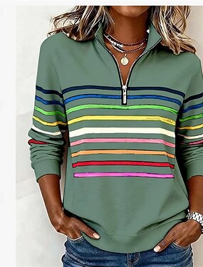 Naisten Pullover-huppari Vetoketjulliset villapaidat Vetoketju Painettu Kuvitettu Abstrakti Muoti Vapaa-aika Pitkähihainen Tiukka pyöreä kaula-aukko Tavalliset topit Katu Arkikäyttö Sininen Rubiini
