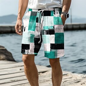Miesten Geometrinen Väripalikka Tilkkutäkki Surffishortsit Uimashortsit Kesähousut Keskivyötärö Katutyyli Havaijilainen Loma Kurenauha Sivutaskut Joustava vyötärö Suunnittelija Vaatetus