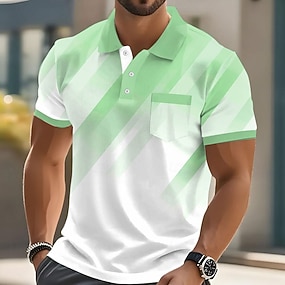 Miesten Raita Polo Lyhythihainen Poolopaidat Kauluspaidat Business Casual ulko- Urheilu- ja treenivaatteet Arki-asut Tasku 3D-tulostus Napit Kesä Sininen Ruskea Apila