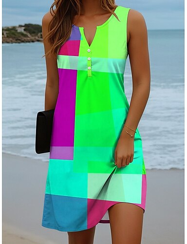 Naisten Mini mekko Väljä mekko Kesämekko Loma Vapaa-aika Boheemi Päivittäin Pyhäpäivä Bile Normaali Kuvitettu Geometrinen Hihaton Lovitettu kaula Sininen Purppura Oranssi Apila Kesä Kevät