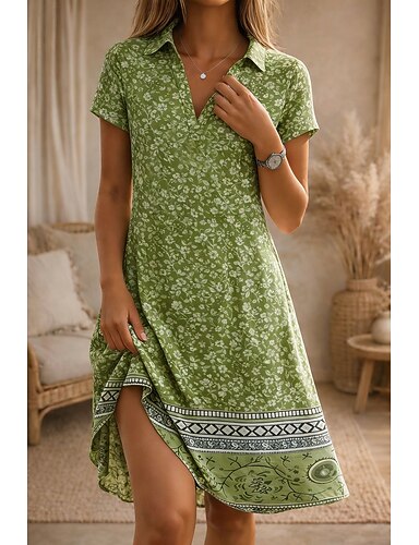 Naisten Midimekko Kesämekko Väljä mekko Rantatyyliä Päivittäin Pyhäpäivä Loose Fit Tavallinen Lyhythihainen Kauluskäänne Valkoinen Punastuvan vaaleanpunainen Apila Kesä
