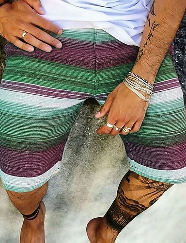 Miesten Shortsit Liinavaatteet Kesähousut Rantahousut Tasku Joustava vyötärö Raidoitettu Mukavuus Hengittävä Polven pituus Kausaliteetti Päivittäin ulko- Loma Muoti Sininen Punastuvan vaaleanpunainen