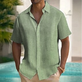 Miesten Paita Pellava paita Kesä paita Ranta-asut Button Up paita Tavallinen Loma Curise Musta Valkoinen Apila Khaki Lyhythihainen Kaulus Vaatetus