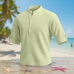 Miesten Paita Pellava paita Popover paita Kesä paita Ranta-asut Band kauluspaita Tavallinen Loma Kausaliteetti Musta Valkoinen Punastuvan vaaleanpunainen Laivaston sininen Lyhythihainen Pystykaulus