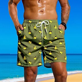 Miesten Eläin Hauska Ankka Uimahousut Uimashortsit Surffishortsit Keskivyötärö Katutyyli Havaijilainen Rantaloma Sivutaskut Verkkovuori Joustava kiristysnyöri vyötäröllä Suunnittelija Vaatetus