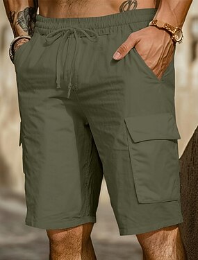 Miesten Shortsit Liinavaatteet Kesähousut Rantahousut Kurenauha Joustava vyötärö Tavallinen Mukavuus Hengittävä Polven pituus ulko- Päivittäin Hiekkaranta Muoti Klassinen tyyli Apila Khaki