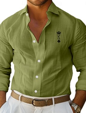 Miesten pellava paita Hevonen ulko- Loma Valkoinen Punastuvan vaaleanpunainen Apila Harmaa Pitkähihainen Kauluskäänne Kevät Syksy Vaatetus Painike ylös