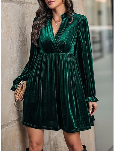 Naisten Mini mekko Joulupuku Velvet mekko Coctail-asu Tavallinen mekko Vapaa-aika Iltajuhlat Juhla Urheilu ja ulkoilu Normaali Tavallinen Pitkähihainen V kaula-aukko Viini Laivaston sininen Apila
