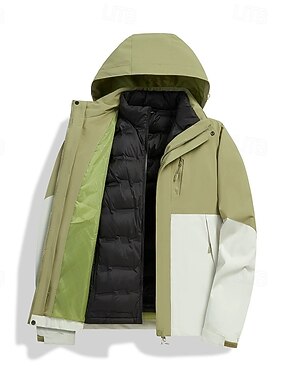 Naisten 3-in-1 vedenpitävä untuvatakki Tuulenkestävä Mukava Vetoketju Tasku Vapaa-aika Väripalikka ulko- Loma Katu Arki-asut Vetoketju Lyhyt Hupullinen Normaali Pitkähihainen Päällysvaatteet Vaalea