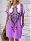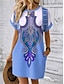 Naisten Mini mekko Väljä mekko Tpaitamekko Kesämekko Vapaa-aika Päivittäin Pyhäpäivä Deitti Normaali Kuvitettu Tribaali Etninen Lyhythihainen Tiukka pyöreä kaula-aukko Sininen Rubiini Purppura Apila