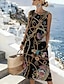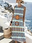 Naisten Midimekko Väljä mekko Kesämekko A linjainen mekko Loma Vapaa-aika Boheemi Hiekkaranta Bile Normaali Kuvitettu Geometrinen Etninen Hihaton Pyöreäkauluksinen Sininen Musta Beesi Kesä Kevät