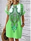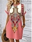 Naisten Midimekko Tpaitamekko Kesämekko Väljä mekko Loma Vapaa-aika Boheemi Hiekkaranta Juhla Normaali Kuvitettu Etninen Lyhythihainen V kaula-aukko Tumman ruskea Kesä Kevät