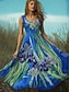 Naisten Pitkä mekko Maxi mekko Boho-mekko Vintage mekko Rento mekko Vintage Päivittäin ulko- Loma Normaali Kukka Etninen Pitkähihainen V kaula-aukko Sininen Kevät Syksy