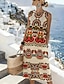 Naisten Maksimekko Väljä mekko Kesämekko Tpaitamekko Loma Vapaa-aika Boheemi Hiekkaranta Juhla Normaali Kuvitettu Etninen Lyhythihainen V kaula-aukko Tumman ruskea Kesä Kevät