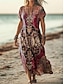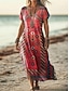 Naisten Maksimekko Kesämekko Tpaitamekko A linjainen mekko Loma Vapaa-aika Hiekkaranta Bile Loose Fit Kuvitettu Tribaali Etninen Lyhythihainen V kaula-aukko Tummanpunainen Viini Rubiini Kesä Kevät