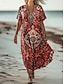 Naisten Maksimekko Väljä mekko Kesämekko Tpaitamekko Loma Vapaa-aika Boheemi Hiekkaranta Juhla Loose Fit Paisley-kuvio Etninen Lyhythihainen V kaula-aukko Appelsiinin punainen Kesä Kevät